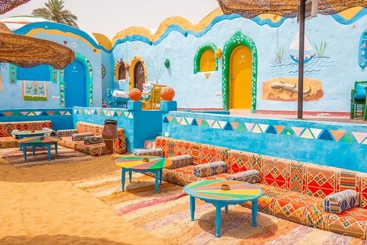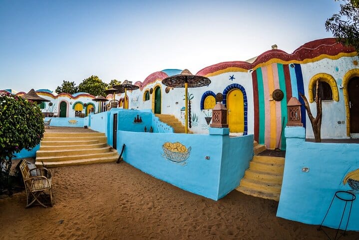 Experience Aswan’s cultural heart on this private Nubian Village and Camel Ride Tour. Enjoy a scenic camel ride along the Nile’s west bank, offering spectacular views of the desert and river landscapes, before crossing by boat to a colorful Nubian village. Meet friendly locals, visit a traditional home, and learn about Nubian heritage, language, and daily life. Unlike typical sightseeing tours, this immersive experience connects you directly with Egypt’s most vibrant community in a warm, authentic setting. With your private Egyptologist guide, air-conditioned transport, and flexible schedule, you’ll enjoy comfort, adventure, and culture in perfect harmony. This tour captures the true spirit of Aswan — its landscapes, its people, and the timeless beauty of life along the Nile.