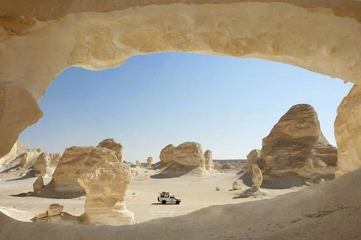 The highlight of the day is the White Desert, where dazzling chalk formations create a scene straight from another planet. Combined with relaxing moments at the natural hot and cold springs, this journey offers both adventure and tranquility in perfect balance.