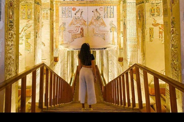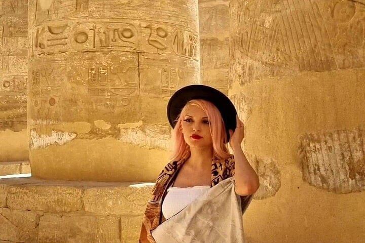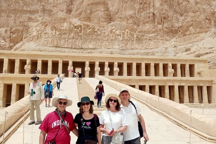 Explore the highlights of both sides of the Nile River in Luxor on this full-day Tour , private tour, led by an Egyptologist guide. You’ll visit top attractions, including the Valley of the Kings, Temple of Hatshepsut, Colossi of Memnon and Temple of Karnak, , and round-trip transportation from your hotel in a private, air-conditioned vehicle will be provided , to add Pick up From The Airport it will be 10$ Extra