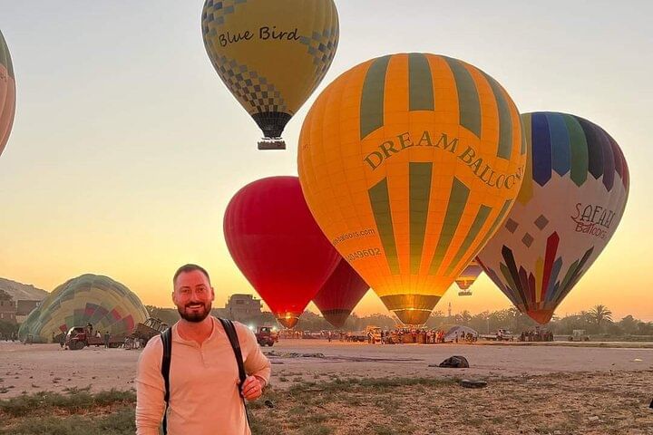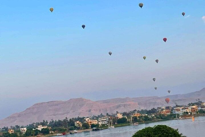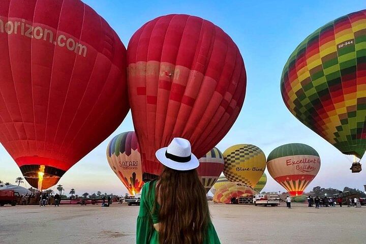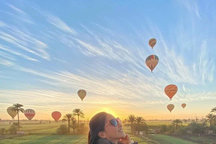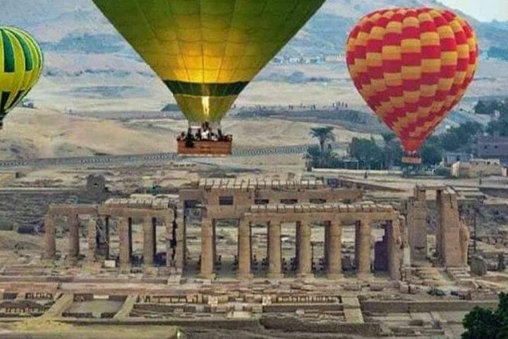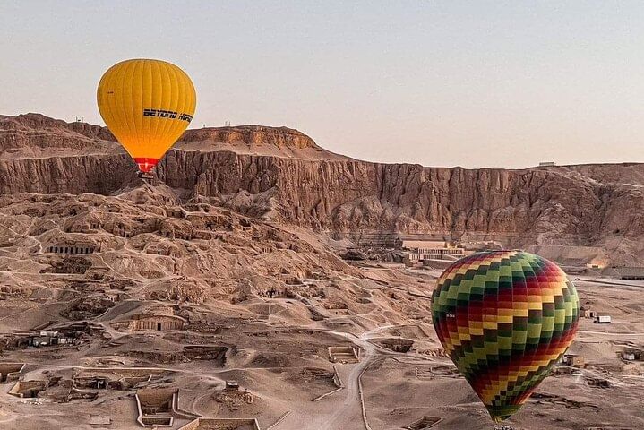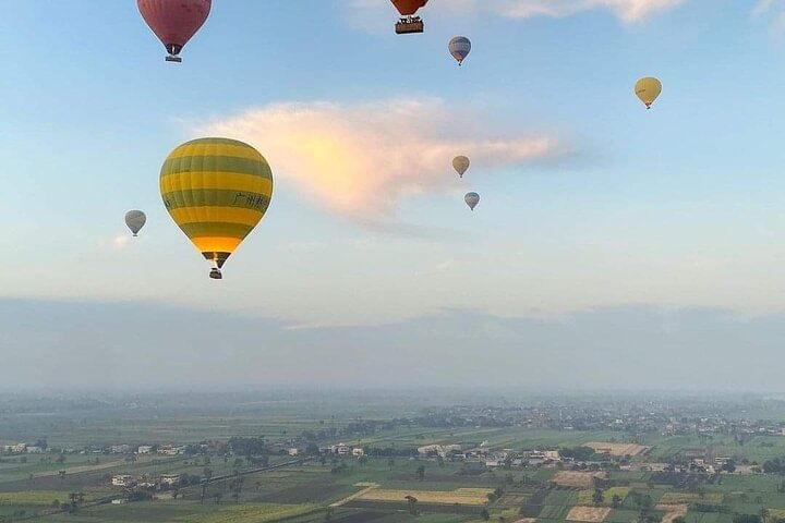 Experience a new side of Luxor, from the sky, with a 45- to 80-minute hot air balloon experience , So Your stay in Luxor would not quite be the same without a bird’s eye view of the city from a hot air balloons.. we will pick you up at your hotel and take you to the launch spot, where you’ll get a quick safety briefing before floating up to the sky. As you soar over the ancient city, your pilot guide will point out various historic attractions and tell you a bit about the area’s rich ancient history.