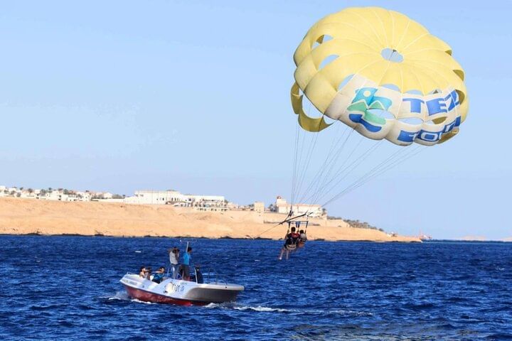 This parasailing experience combines the beauty of the Red Sea with an unforgettable sense of adventure. Unlike other water activities, parasailing allows you to soar up to 100 meters above the sea, offering panoramic views of Sharm El Sheikh’s coastline, coral reefs, and mountains. Safety and fun go hand in hand, with expert instructors, high-quality equipment, and professional supervision at every stage. Perfect for couples, families, and thrill-seekers, this activity is both peaceful and adrenaline-pumping. It’s an ideal way to admire Sharm El Sheikh’s beauty from a completely new perspective — floating between sea and sky.